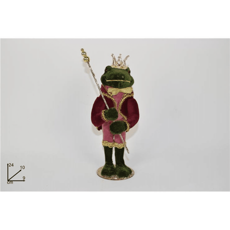 Βάτραχος Βελλούδινος Πράσινος με Χρυσή Κορόνα 24cm Welkhome