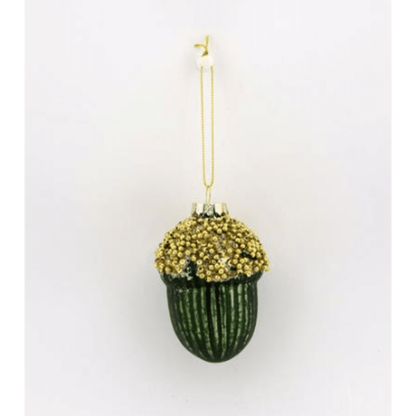Βελανίδι Χριστουγεννιάτικο Στολίδι Γυάλινο Πράσινο 8cm Welkhome