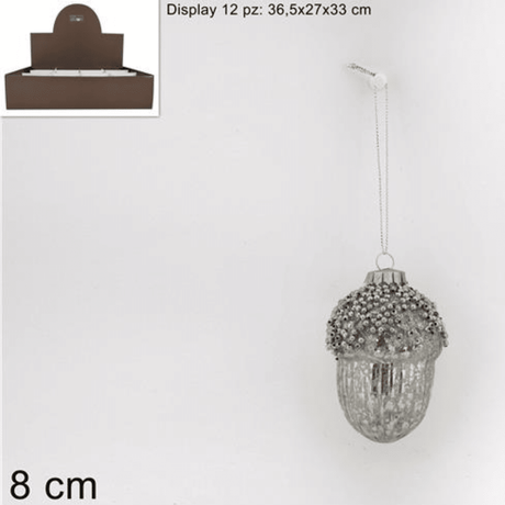 Βελανίδι Χριστουγεννιάτικο Στολίδι Γυάλινο Ασημί 8cm Welkhome