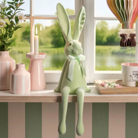 Λαγός Καθιστός με Κρεμαστά Πόδια Βελούδινος Πλαστικός Πράσινος 17x60x20cm