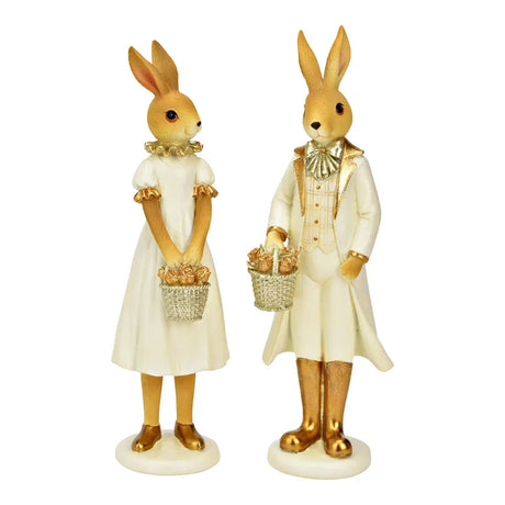 Λαγός /Λαγουδίνα Διακοσμητική Φιγούρα Πορσελάνινη Κρεμ με Χρυσές Λεπτομέρειες 8x28x8cm 1/τεμ