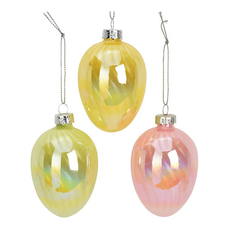 Αυγό Γυάλινο Κρεμαστό σε 3 Αποχρώσεις κίτρινο/πράσινο/ρόζ 5x8x5cm