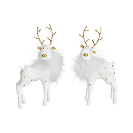 Τάρανδος Χριστουγεννιάτικο Διακοσμητικό Κεραμικό Λευκό με Χρυσό Πουά 4x16x8cm G.Wurm