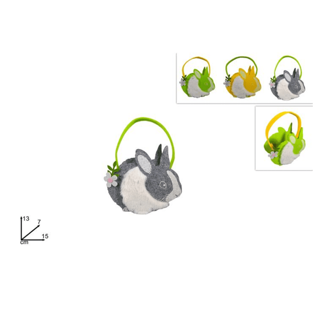 Πασχαλινό Διακοσμητικό Καλάθι Τσόχινο με Χερούλι Σχήμα Κουνέλι 15x13x7cm Welkhome