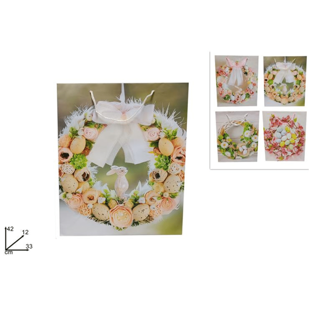 Σακούλα Χάρτινη Δώρου με Πασχαλινό Σχέδιο 42x33x12cm Welkhome