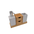 Σετ μπάνιου 3 τεμαχίων με κεραμικό dispenser,κεραμική θήκη οδοντόβουρτσας και μπιζουτιέρα ξύλινη.