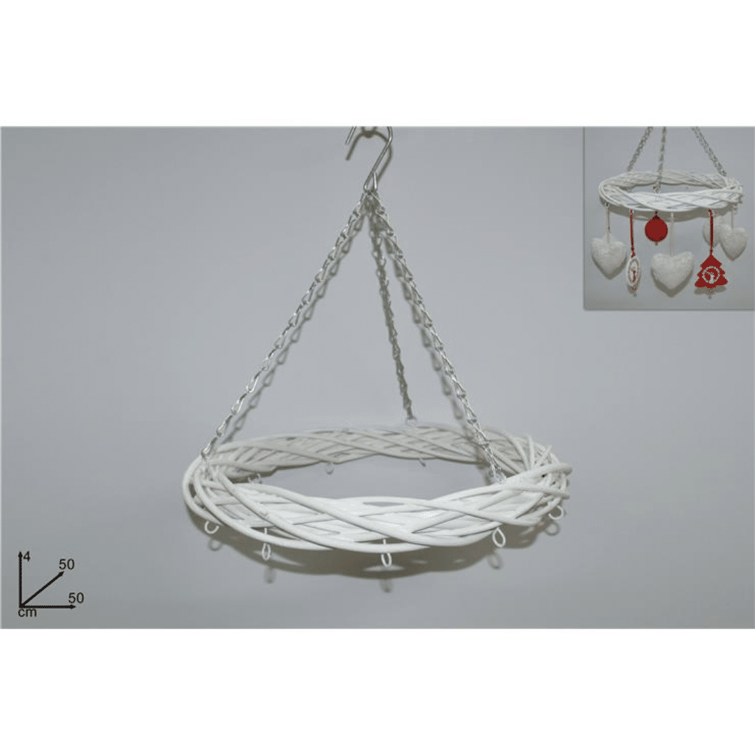 Στεφάνι Κρεμαστό Ξύλινο Λευκό με Γατζάκια 50x4cm Welkhome
