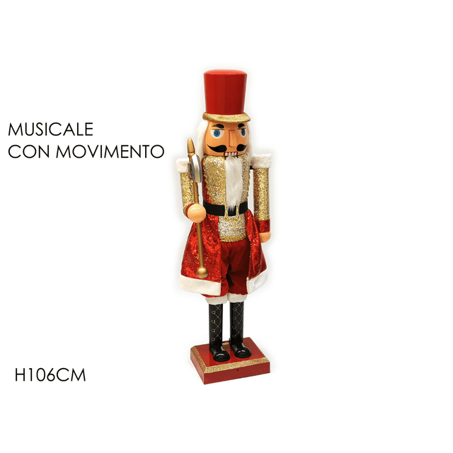 Χριστουγεννιάτικος Καρυοθραύστης Κόκκινος/Χρυσός Πλαστικός με Μουσική και Κίνηση 106cm